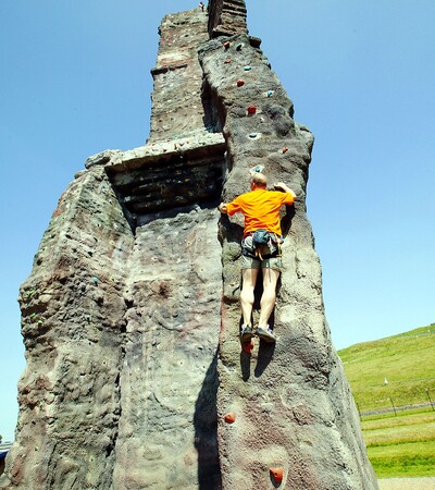 Insgesamt gibt es 25 mit Griffen geschraubte Routen am Felsen. Hinzu kommen sechs Routen, die völlig ohne Griffe auskommen. Hier lässt es sich auch wunderbar bouldern, also klettern ganz ohne Griffe.