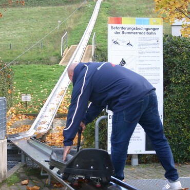 Rodelbahn: Rasante Abfahrten gehören zum Arbeitsalltag im Elbauenpark