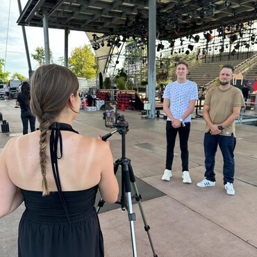 Julian F.M. Stoeckel im Interview mit dem Team vom Elbauenpark auf der Seebühne Magdeburg.