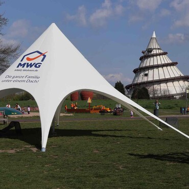 Sonnensegel und MWG-Sternenzelt im Elbauenpark