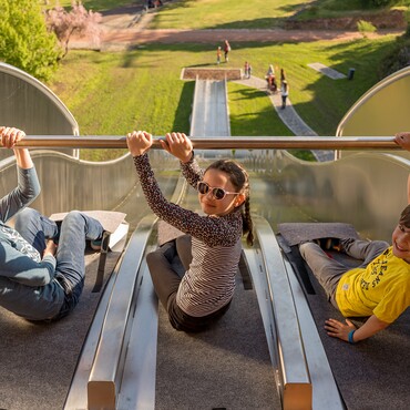 Der 18 Meter hohe Rutschenturm lädt bereits seit 20.03.2022 wieder zum Rutschen ein.