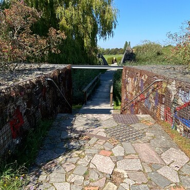 Es geht hinauf auf den ehemaligen Müllberg der Stadt Magdeburg.