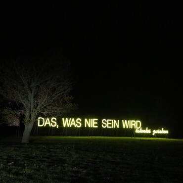 „Das, was nie sein wird“: Unsere großen neongelben Buchstaben leuchten wieder.