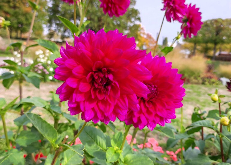 Vielen Dank für die Blumen: Der Elbauenpark verschenkt ab 6. November 2023 die Blumen, die in der Sommersaison im Park geblüht haben. Immerhin schmückte ein prächtiges, florales Kleid aus Petunien und Dahlien Magdeburgs Erholungsoase in den warmen Monaten. Die Landschaftsgärtnerinnen und -gärtner, die die Blumenschau mit den ausgefallensten Sorten komponiert hatten, schneiden die Blüten ab, ehe sie die Pflanzen aus den Beeten graben.