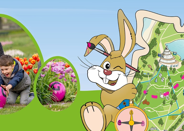 Für die virtuelle Variante scannen die Besucherinnen und Besucher mit einem Smartphone oder Tablett über die 3DQR-App die QR-Codes auf den zehn Eiern, die raffiniert versteckt sind im grünen, farbenfrohen Park. Dahinter verbirgt sich eine zauberhafte Welt, die in den Osterferien vom 9. bis 18. April 2022 zu erleben ist.
