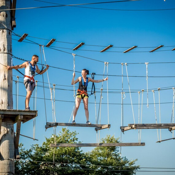 Das Gewinnerteam kann mit insgesamt 25 Teilnehmern spannende Herausforderungen meistern, die Teamarbeit stärken und jede Menge Spaß haben. Es gilt gemeinsam bis zu acht Parcours mit unterschiedlichen Schwierigkeitsgraden in bis zu 9 Metern Höhe zu bewältigen. Auf die Teilnehmerinnen und Teilnehmer warten in luftiger Höhe Elemente wie Seile, Netze, Holzbalken und sogar ein Skateboard zum Balancieren und Klettern. Und während sich die Teilnehmerinnen und Teilnehmer von Kletterelement zu Kletterelement schwingen und Grenzen überwinden, können sie die Natur aus einer neuen Perspektive erleben.