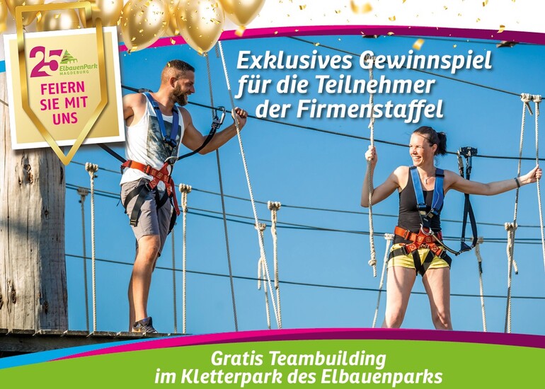Im Jubiläumsjahr des Elbauenparks haben Teilnehmer und Teilnehmerinnen der Magdeburger Firmenstaffel am 27. Juni 2024 die einmalige Gelegenheit, ein Teambuildingevent im Kletterpark zu gewinnen.