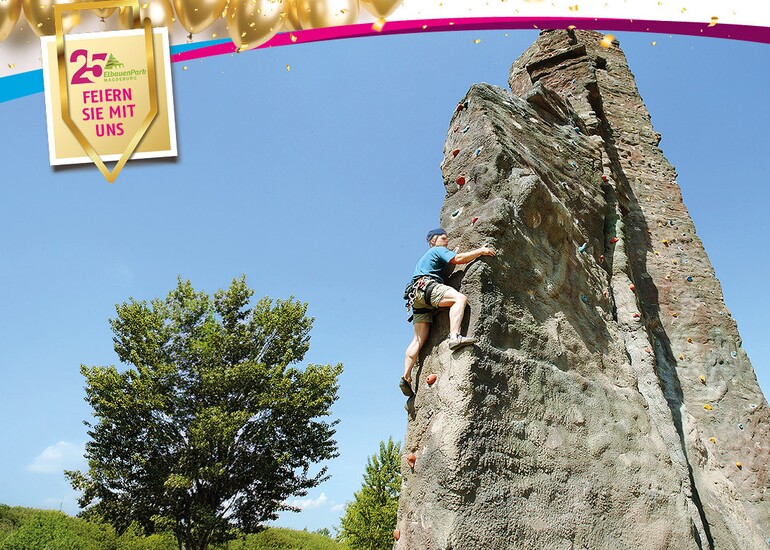 Der Berg ruft! Der Kletterfelsen im Elbauenpark bietet als 25 Meter hoher Riese auf dem Großen Cracauer Anger echte Herausforderungen im alpinen Stil. Wer hier Höhenluft schnuppern und was Neues ausprobieren möchte, kann jetzt eines von 25 professionellen Klettertrainings mit dem Magdeburger Alpenverein gewinnen. Die verlost der Elbauenpark im Rahmen seines 25. Geburtstags.