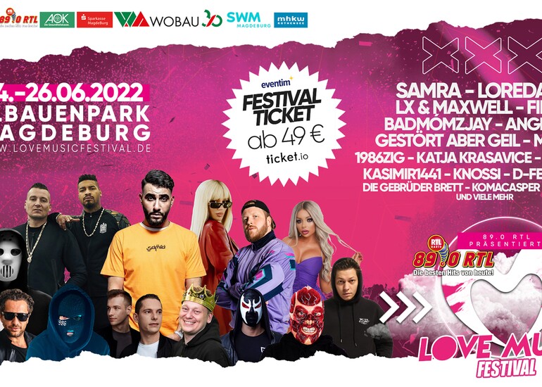 Im Magdeburger Elbauenpark spielt die Musik. Das „Love Music Festival“ ist am 24. und 25. Juni zu Gast auf dem Großen Cracauer Anger im Elbauenpark Magdeburg. 89.0 RTL hat ein spektakuläres LineUp zusammengestellt mit Stars wie Loredana, Badmómzjay, Finch und dem König des Internets, Jens Knossi Knossalla.