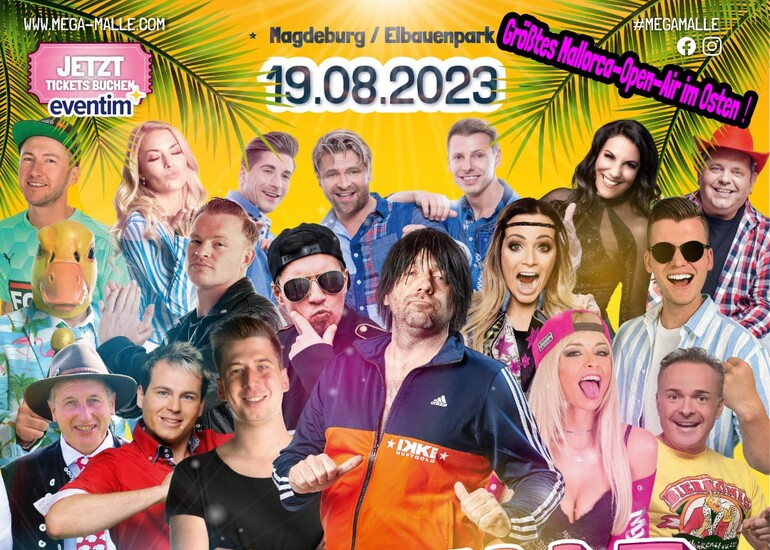 Ein weiteres Highlight findet am Samstag, 19.August 2023, statt. Beim großen Mega Malle Festival haben sich die Mallorca-Stars Mia Julia, Markus Becker, Ikke Hüftgold und Julian Sommer angekündigt. Sie und viele weitere Ballermann-Stars bringen das Mallorca Gefühl in den Elbauenpark und heizen dem Publikum mit Hits wie „Das rote Pferd“, „Layla“ und „Helikopter“ ordentlich ein. Moderiert wird die MEGA-Sause vom original Resident DJ des Bierkönigs und MegaParks Mallorca: DJ Chris Mega.
