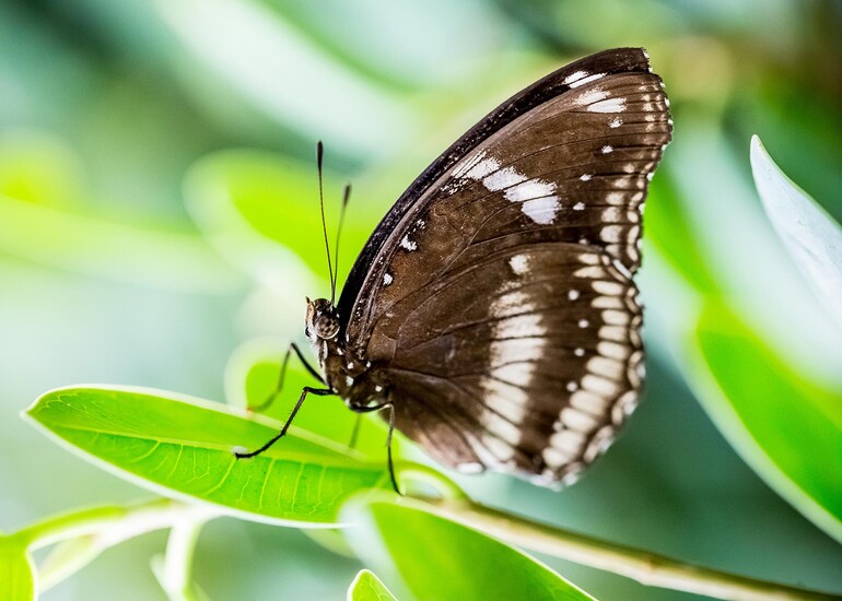 Die schönsten Neuheiten im Schmetterlingshaus bleiben jedoch selbstverständlich die filigranen Schmetterlinge selbst. Vom Scharlachroten Ritter bis zum Bananenfalter: Die 15 Arten von vier Kontinenten sehen nicht nur einzigartig aus, sondern tragen auch außergewöhnliche Namen. Den Weg von der Puppe im Kokon bis zum prachtvollen Falter können Besucherinnen und Besucher hautnah beobachten. Unter anderem der Atlasseidenspinner, zweitgrößter Falter der Welt, macht sich hier gerade für seinen großen Auftritt bereit. In drei bis sechs Wochen beginnt das große Schlüpfen.