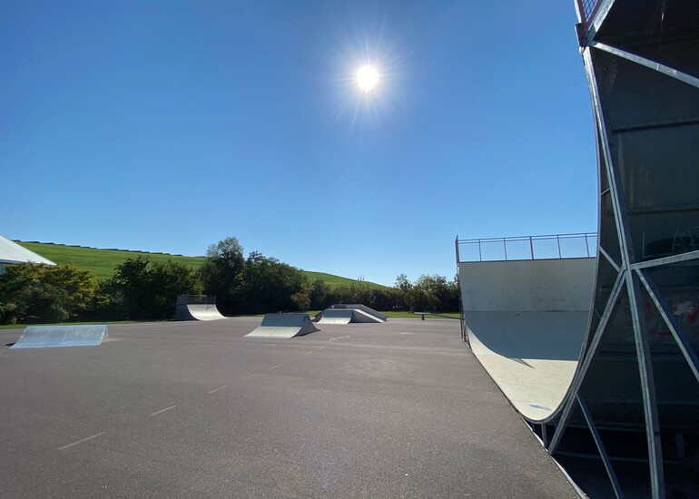 Geschützt hinter großen Büschen und Bäumen warten hier eine Quarter-Pipe, zwei sogenannte Rails, zwei Wellen sowie eine kleine und große Halfpipe. Ob Switch, Drop-In oder Kickturn: Hier lassen sich die verschiedensten Skate-Techniken perfektionieren. Darüber hinaus gilt es hier bunte Graffitis zu bewundern. Parkbänke stehen für eine bequeme Auszeit parat.