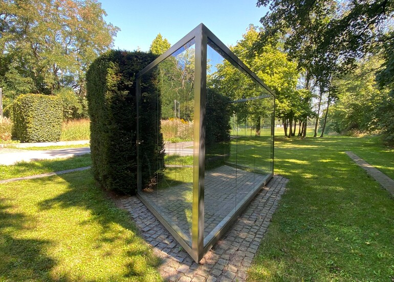 Geschaffen wurde das Kunstwerk von Dan Graham zur Bundesgartenschau 1999 im heutigen Elbauenpark Magdeburg. Der Clou: Die Gäste des Elbauenparks spiegeln sich in den Scheiben und sehen sich dabei gleichzeitig in den grünen Elbauen. Auch einzigartige Erinnerungsfotos sind hier garantiert. Bekannt sind diese Art der verspiegelten Scheiben aus zahlreichen Bürogebäuden. Der Künstler Dan Graham sorgt damit für ein Stück Urbanität inmitten der Natur.