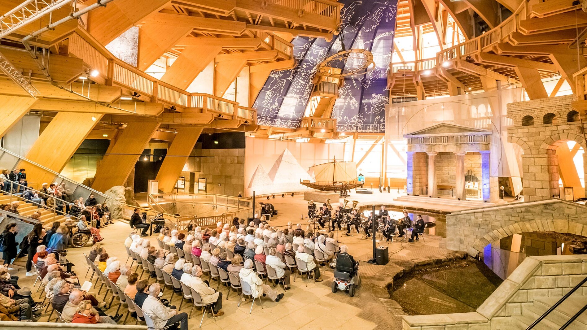 Die außergewöhnliche Bühne liegt eingebettet in der einzigartigen Naturkulisse des Elbauenparks in Magdeburg und bietet einen malerischen Ausblick auf See, Angerwiese und Pappelwäldchen. Aufgrund dieses einmaligen Ambientes finden jedes Jahr zahlreiche Events jeglicher Art statt.